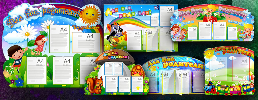 Информационные стенды могут быть плоскими – фоновая панель с полноцветной графикой, и прозрачными пластиковыми карманами для хранения