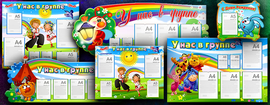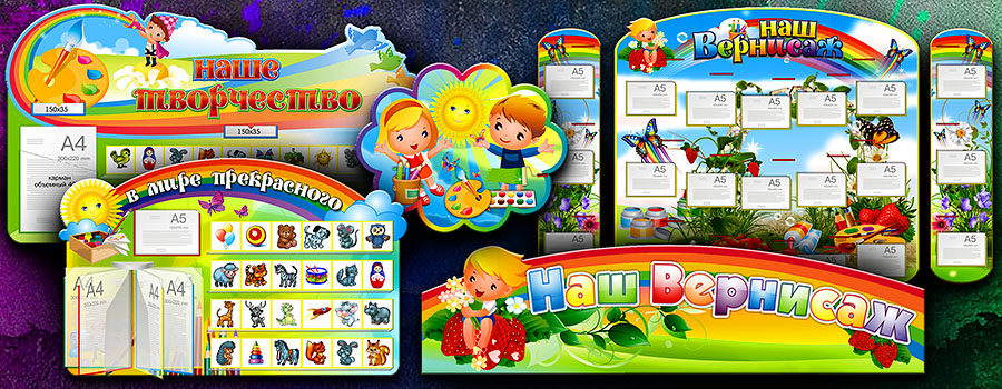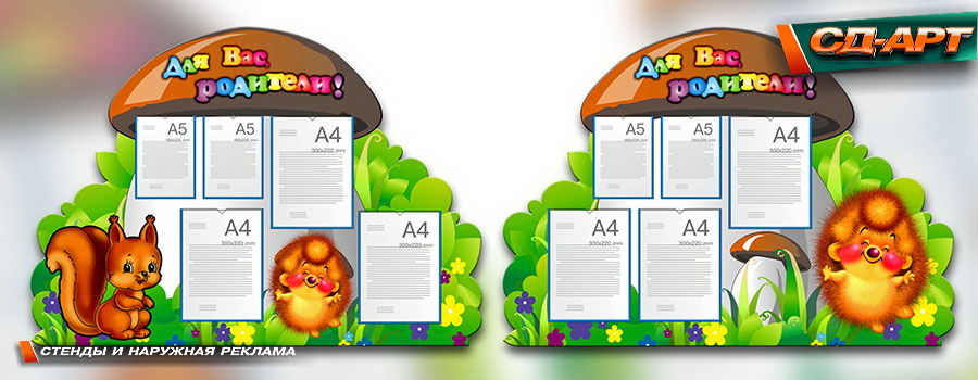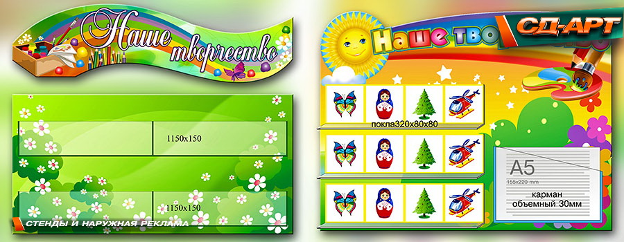 информации на обычных листах бумаги и объемными – обычно состоят из плоских стендов, с объемными шапками, боковыми декоративными элементами,